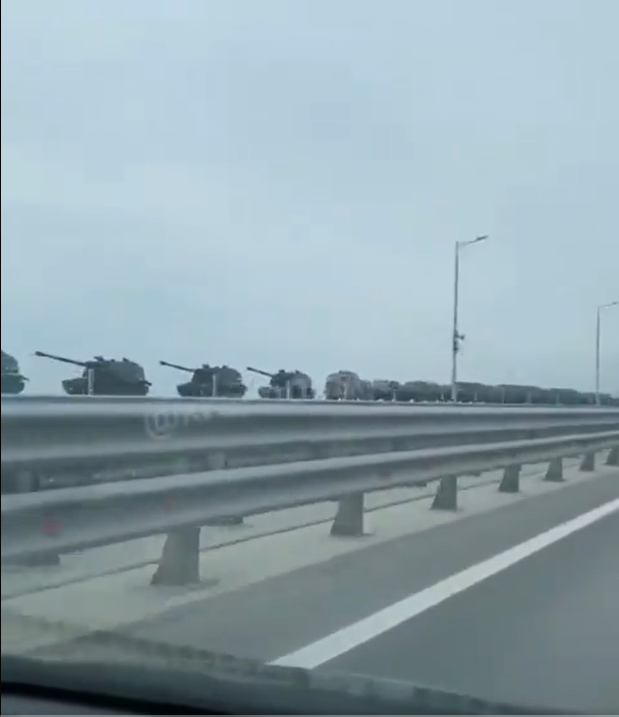 Και μπορείτε επίσης να δείτε μια τεράστια σειρά ρωσικών στρατιωτικών δυνάμεων και αρμάτων μάχης στη γέφυρα της Κριμαίας.